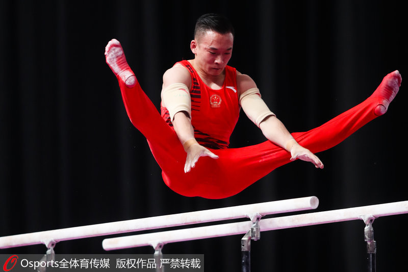 男子双杠决赛 邹敬园、肖若腾分获冠亚军