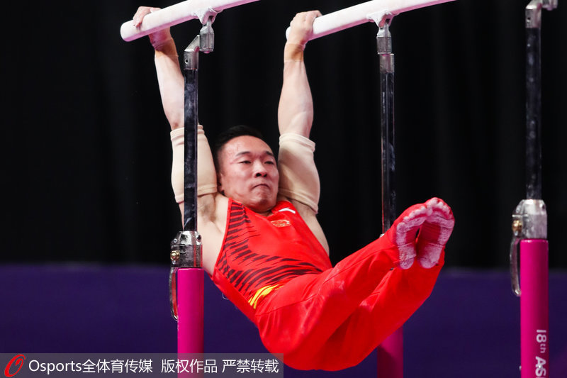 男子双杠决赛 邹敬园、肖若腾分获冠亚军