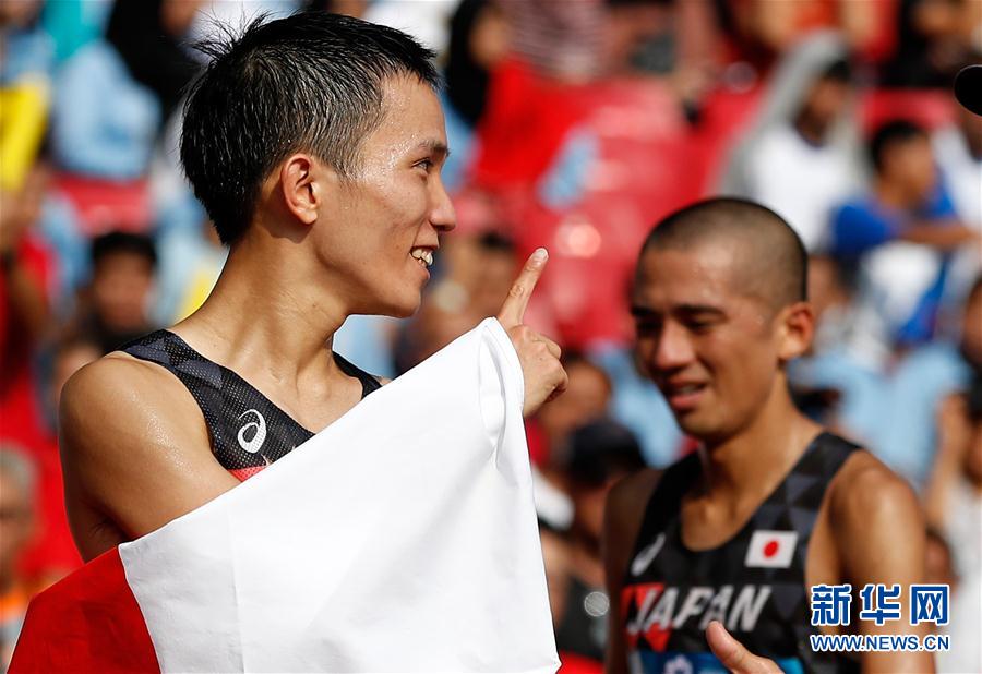8月25日,日本选手井上大仁在比赛后庆祝。 新华社记者王丽莉摄