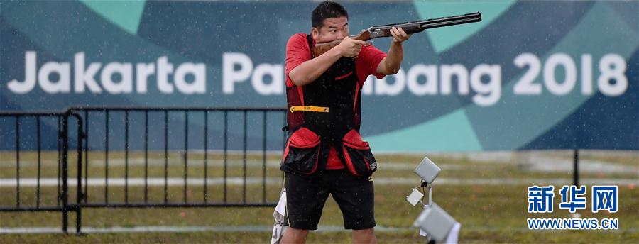 8月26日,中国选手金迪在决赛中。 当日,在第18届亚运会举行男子飞碟双向决赛中,中国选手金迪获得亚军。 新华社发(王申摄)