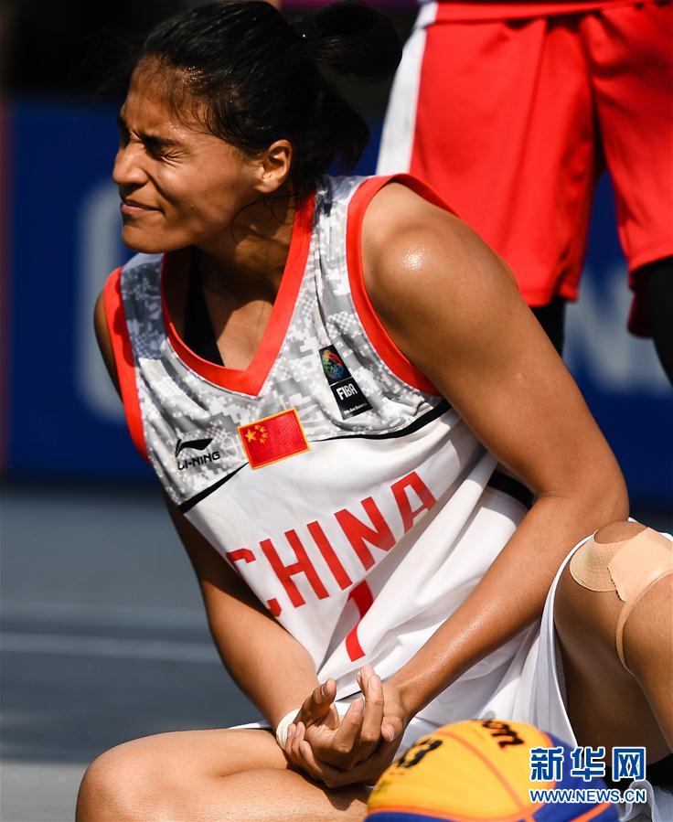 8月26日,中国选手迪拉娜·迪里夏提在比赛中。 当日,在第18届亚运会女子三人篮球四分之一决赛中,中国队以21比7战胜伊朗队。 新华社记者李响摄