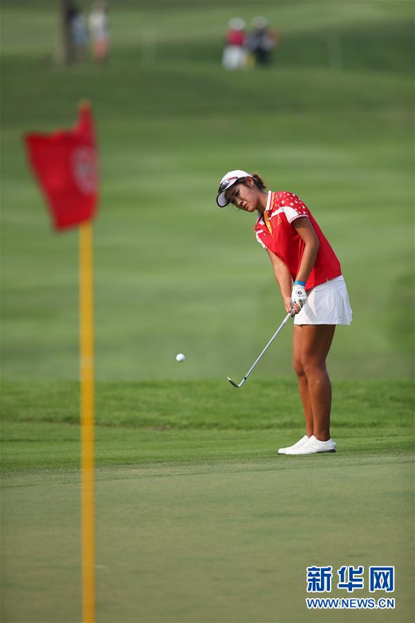 8月26日,中国队选手刘文博在比赛中。 当日,在第18届亚运会高尔夫女子团体赛中,中国队以四轮总杆数558杆的成绩获得季军。 新华社记者丁汀摄