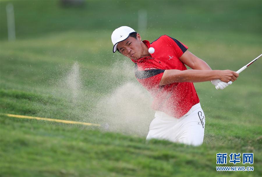 8月26日,中国队选手张华创在比赛中挥杆。 当日,在第18届亚运会高尔夫男子团体赛中,中国队以四轮总杆数843杆的成绩获得亚军。 新华社记者丁汀摄