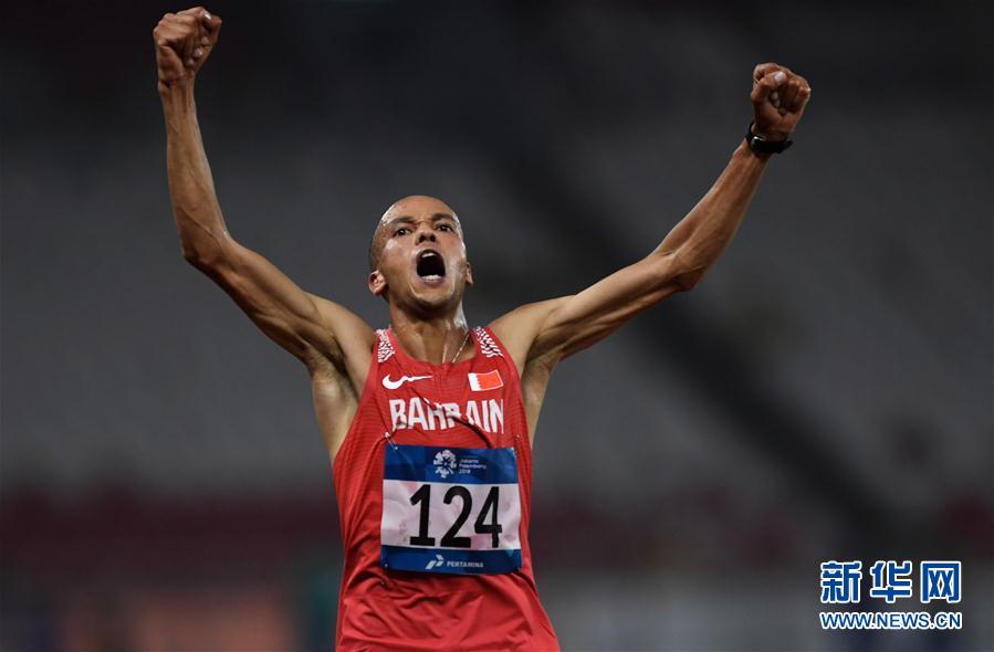 8月26日,巴林选手查尼在比赛后庆祝。 当日,在第18届亚运会田径男子10000米决赛中,巴林选手查尼以28分35秒54的成绩获得冠军。 新华社记者岳月伟摄
