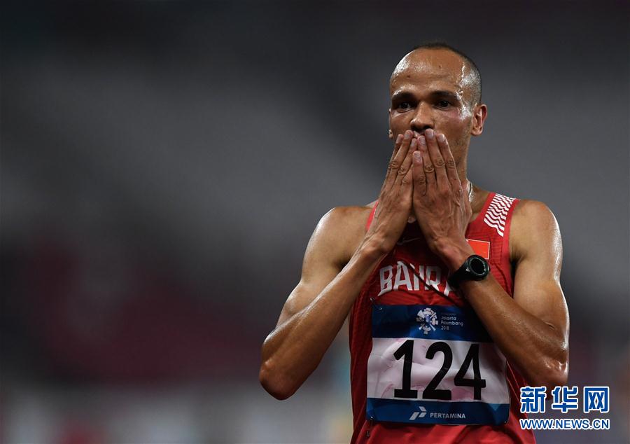 8月26日,巴林选手查尼在比赛后庆祝。 当日,在第18届亚运会田径男子10000米决赛中,巴林选手查尼以28分35秒54的成绩获得冠军。 新华社记者岳月伟摄
