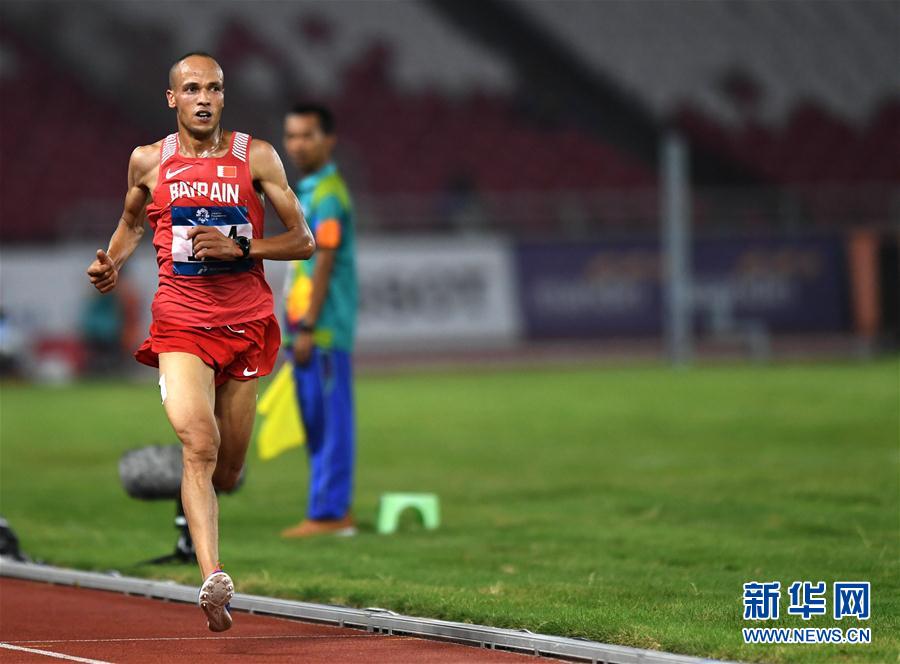 8月26日,巴林选手查尼在比赛中。 当日,在第18届亚运会田径男子10000米决赛中,巴林选手查尼以28分35秒54的成绩获得冠军。 新华社记者岳月伟摄