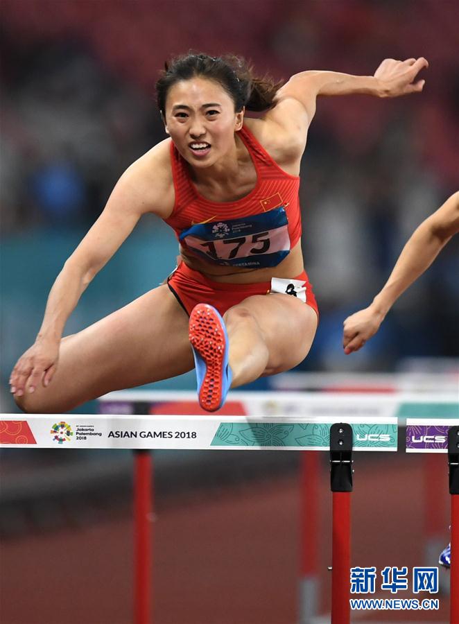 8月26日,中国选手王逗在比赛中。 当日,在第18届亚运会田径女子100米栏决赛中,中国选手王逗以13秒50的成绩获得第四名。 新华社记者岳月伟摄