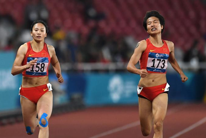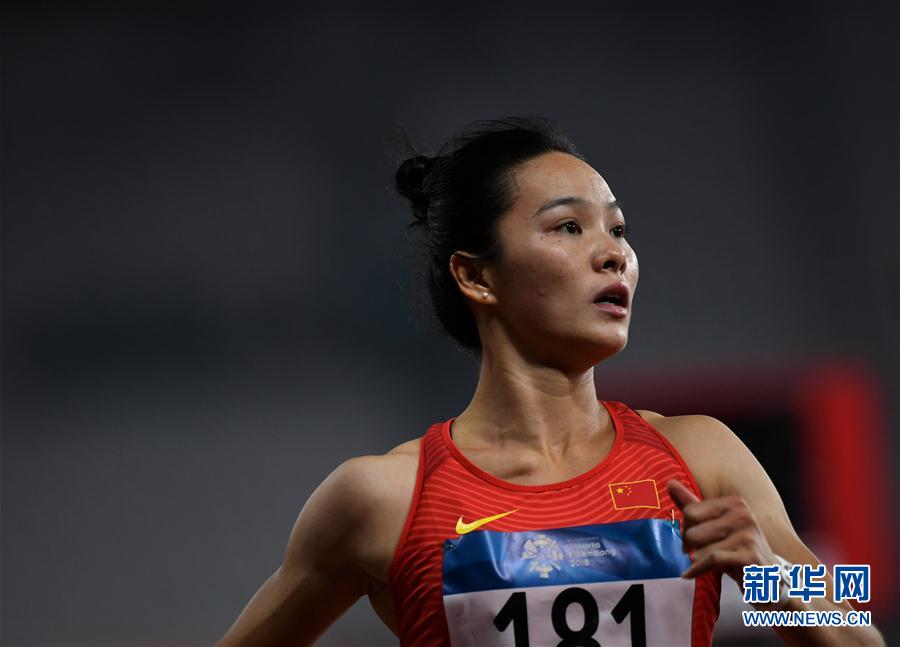 8月26日,中国选手韦永丽在比赛后。 当日,在第18届亚运会田径女子100米决赛中,中国选手韦永丽以11秒33的成绩获得季军。 新华社记者岳月伟摄