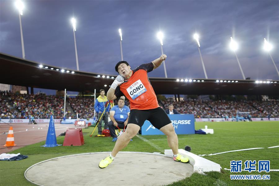↑ 图为2017年8月24日,巩立姣在国际田联钻石联赛苏黎世站女子铅球决赛中。 新华社发(米歇尔·立米纳摄)
