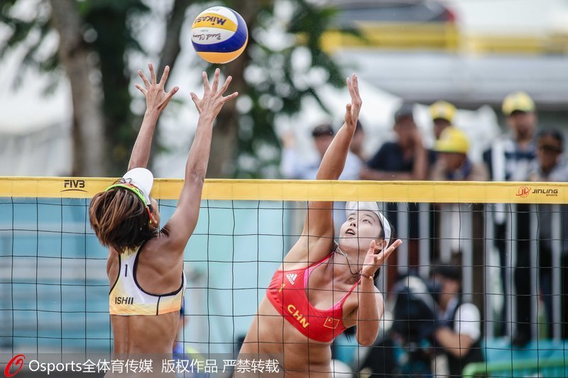 女子沙滩排球决赛 中国2:1胜日本夺冠