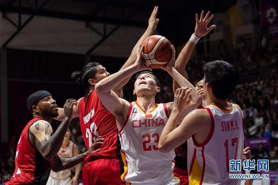 8月27日,中国队球员阿不都沙拉木·阿不都热西提(右二)在比赛中进攻。 当日,在第18届亚运会男子篮球四分之一决赛中,中国队以98比63战胜印度尼西亚队。 新华社记者张金加摄
