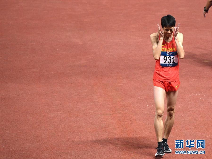 8月27日,中国选手王宇在比赛中。 当日,第18届亚运会男子跳高决赛在雅加达举行。 新华社记者杜宇摄