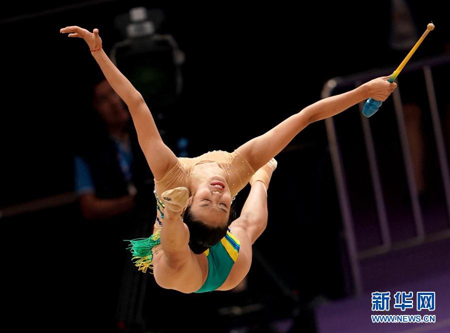 8月27日,中国选手赵雅婷在比赛中 当日,第18届亚运会艺术体操个人全能资格赛在雅加达举行。 新华社记者王毓国摄