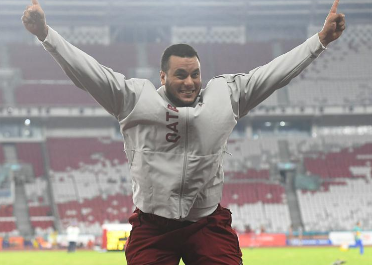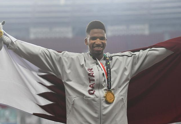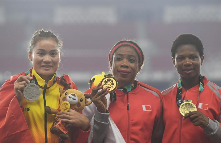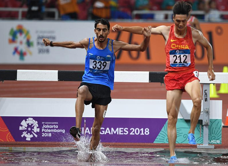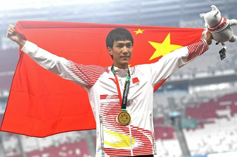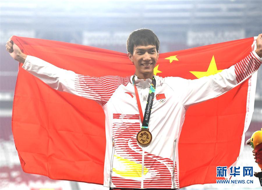 8月27日,中国选手王宇在颁奖仪式上。 当日,在第18届亚运会男子跳高决赛中,中国选手王宇以2米30的成绩获得冠军。 新华社记者岳月伟摄