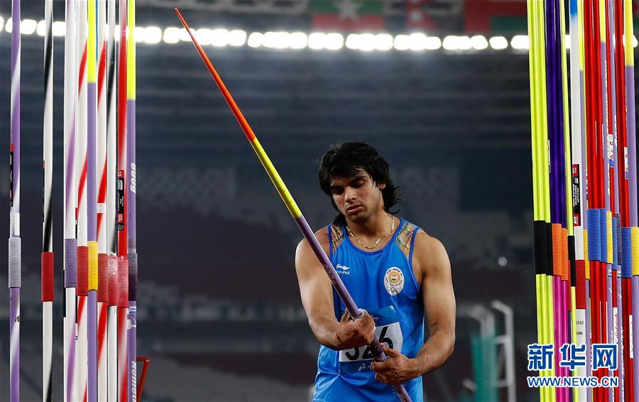 8月27日,印度选手乔普拉在比赛中。 当日,在第18届亚运会田径男子标枪决赛中,印度选手乔普拉以88米06的成绩获得冠军。 新华社记者王丽莉摄