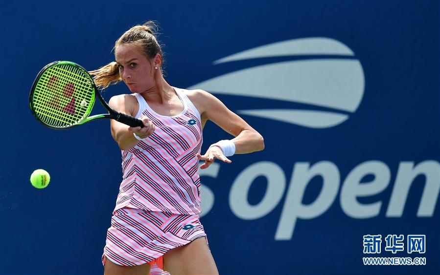 8月27日,里巴日科娃在比赛中回球。 当日,在2018美国网球公开赛女单第一轮比赛中,中国选手王蔷以2比0战胜斯洛伐克选手里巴日科娃,晋级第二轮。 新华社记者刘杰摄