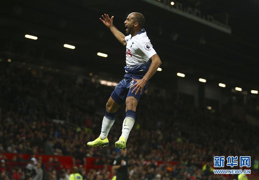 8月27日,热刺队球员卢卡斯·莫拉进球后庆祝。 当日,在2018-2019赛季英格兰足球超级联赛第三轮比赛中,热刺队客场以3比0战胜曼联队。 新华社/美联