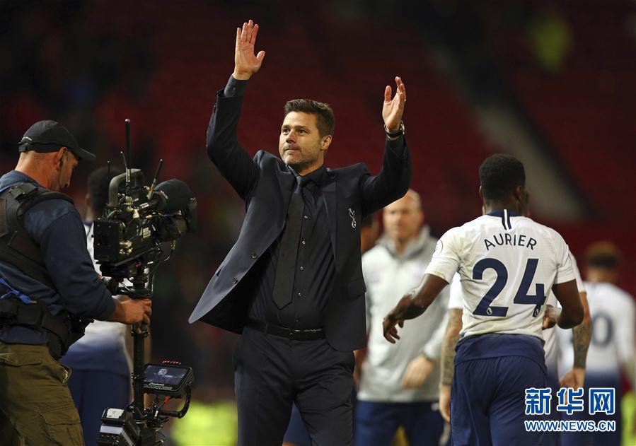 8月27日,热刺队主教练波切蒂诺在获胜后庆祝。 当日,在2018-2019赛季英格兰足球超级联赛第三轮比赛中,热刺队客场以3比0战胜曼联队。 新华社/美联