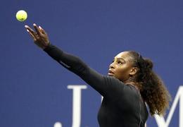 8月27日,塞雷娜·威廉姆斯在比赛中发球。 当日,在2018美国网球公开赛女单第一轮比赛中,美国选手塞雷娜·威廉姆斯以2比0战胜波兰选手里内特,晋级第二轮。 新华社记者李木子摄