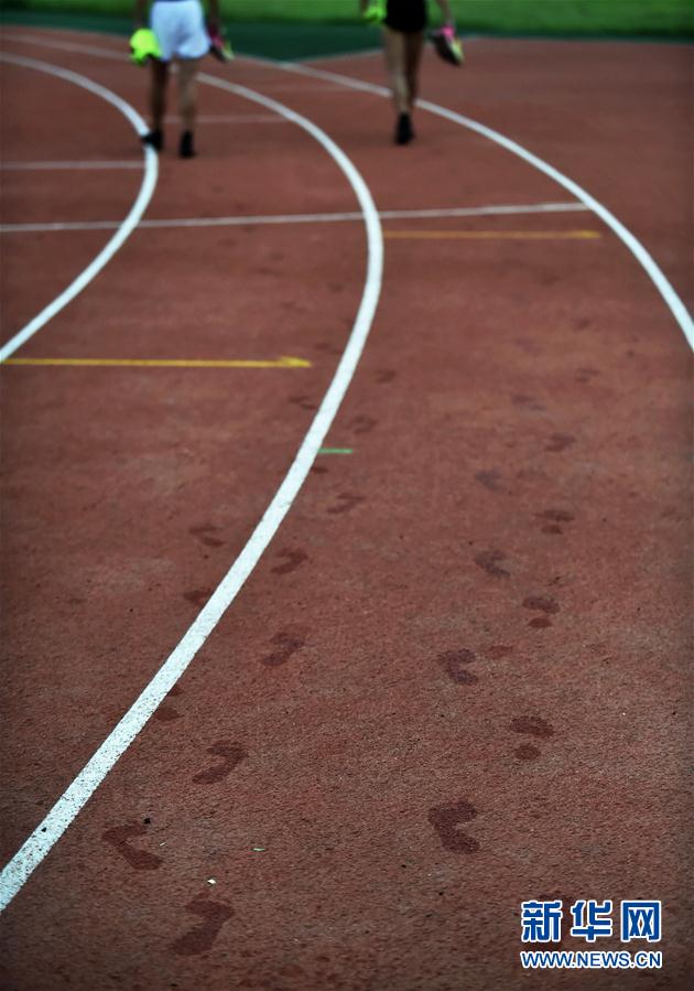 图为训练结束后兄弟二人离开田径场(8月16日摄)。 新华社记者李雨泽摄