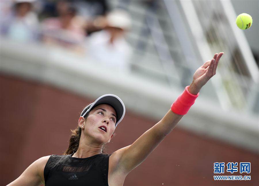 8月27日,穆古拉扎在比赛中发球。 当日,在2018美国网球公开赛女单第一轮比赛中,中国选手张帅以0比2不敌西班牙选手穆古拉扎,无缘下一轮。 新华社记者王迎摄