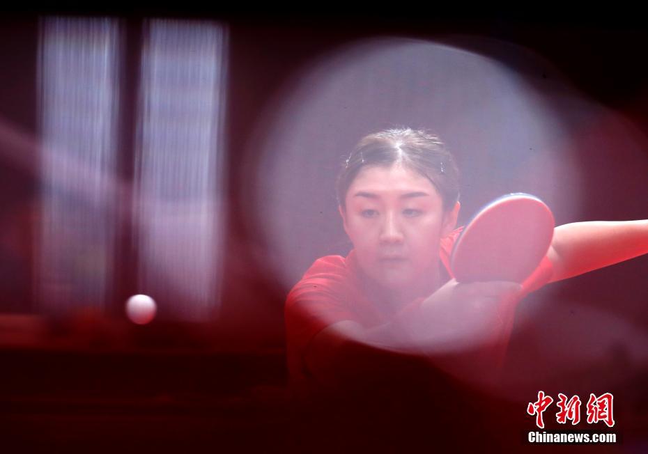 当地时间8月28日,在雅加达亚运会乒乓球团体赛中,中国男女乒乓球队均战胜对手,挺进决赛。图为中国选手陈梦在比赛中。中新社记者 刘关关 摄