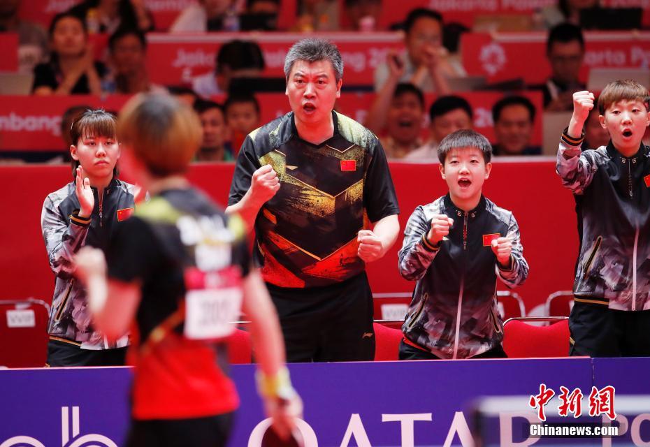 当地时间8月28日,中国乒乓球队战胜朝鲜队,获得第18届亚运会乒乓球女子团体冠军。中新社记者 刘关关 摄