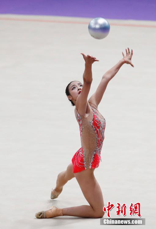 当地时间8月28日,雅加达亚运会艺术体操个人全能决赛落下帷幕,中国选手赵雅婷以65.55分摘得铜牌。中新社记者 刘关关 摄