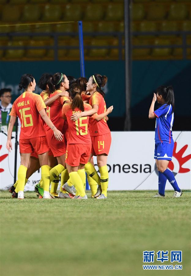 8月28日,中国队球员在进球后庆祝。 当日,在第18届亚运会女足半决赛中,中国队以1比0战胜中国台北队,晋级决赛。 新华社发(刘艾伦摄)