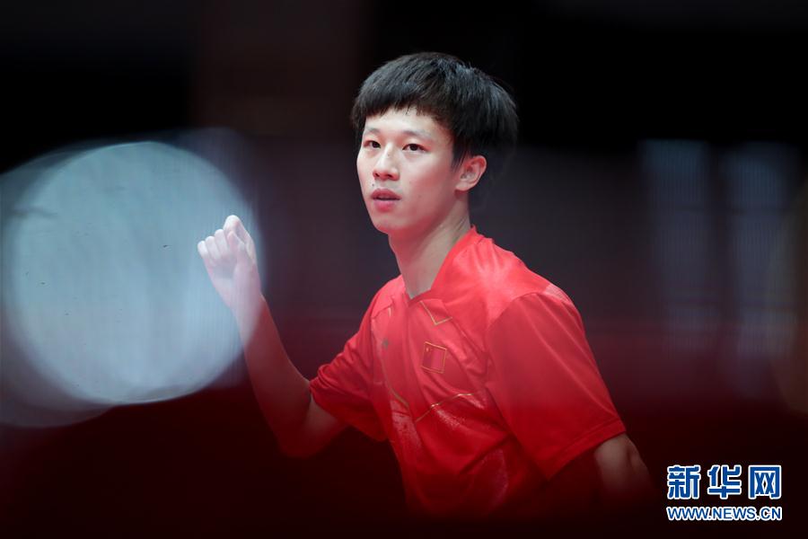 8月28日,中国队球员林高远在比赛中庆祝。 当日,在第18届亚运会乒乓球男子团体决赛中,中国队以3比0战胜韩国队,获得冠军。 新华社记者丁汀摄