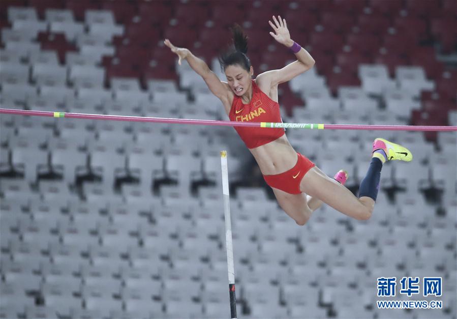 8月28日,中国选手李玲在比赛中。 当日,在第18届亚运会田径女子撑杆跳高决赛中,中国选手李玲以4米60的成绩获得冠军。 新华社记者兰红光摄