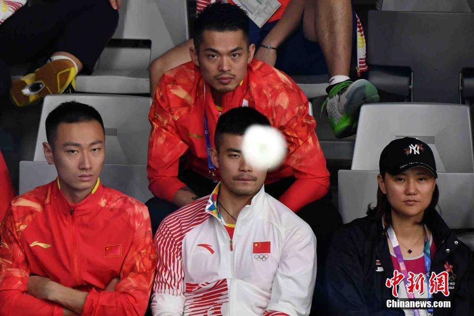 亚运会羽毛球男子团体四分一决赛,中国羽球名将林丹并没有出场。坐在看台的他十分认真地关注比赛。中新社记者 王东明 摄