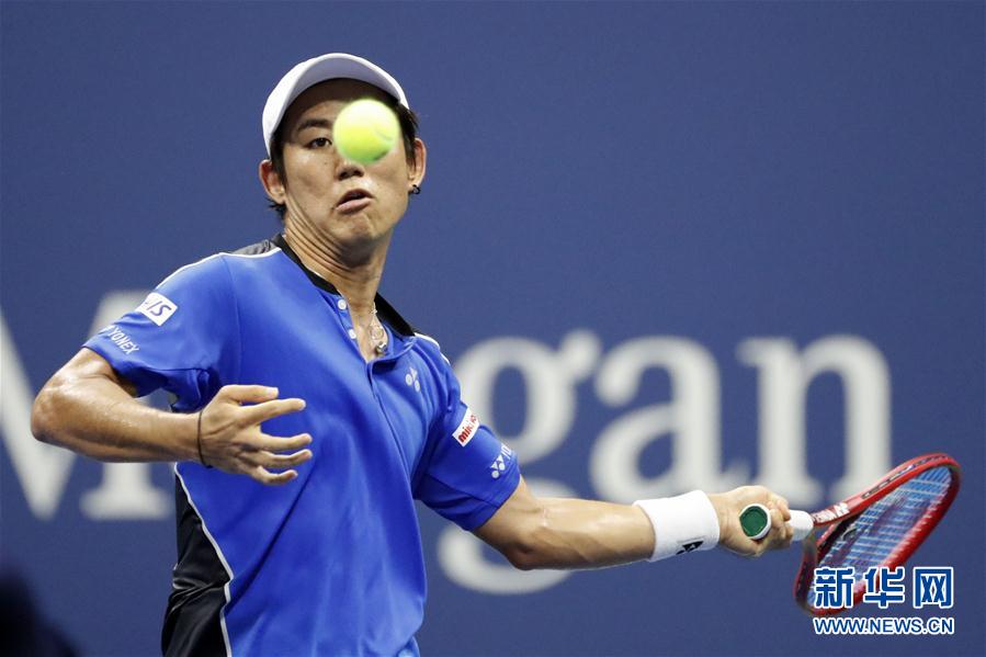 8月28日,西冈良仁在比赛中回球。新华社记者李木子摄