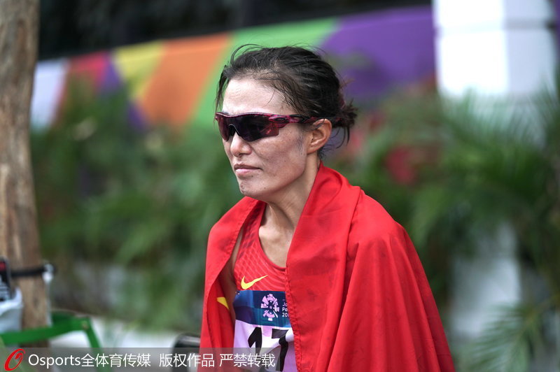 人民网北京8月29日电(李乃妍 实习生陈呈) 北京时间今日,2018年雅加达亚运会女子20公里竞走比赛中,中国队的杨家玉以1小时29分15的成绩夺冠,另一名中国选手切阳什姐以同样的成绩获得亚军,中国队包揽金银。(Osports全体育传媒专供人民体育 版权作品 严禁转载)