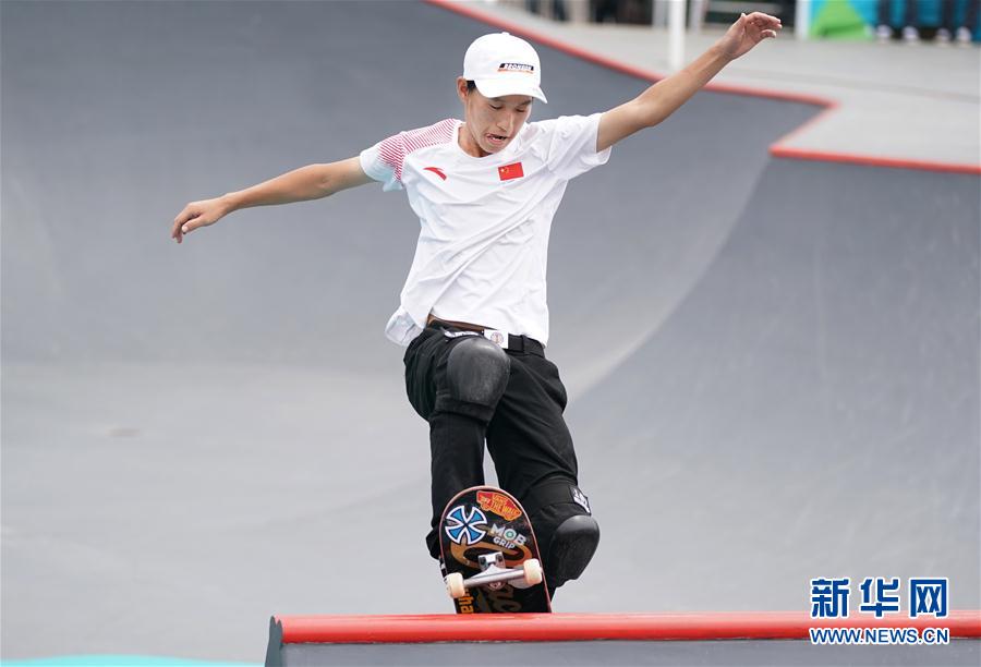 8月29日,中国选手孙坤坤在比赛中。最终,他获得第五名。 当日,第18届亚运会滑板男子碗池决赛在印度尼西亚巨港举行。 新华社记者程敏摄