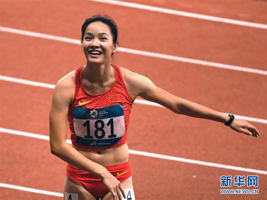 8月29日,中国选手韦永丽在比赛后。 当日,在第18届亚运会女子200米决赛中,中国选手韦永丽以23秒27的成绩获得季军。 新华社记者李贺摄