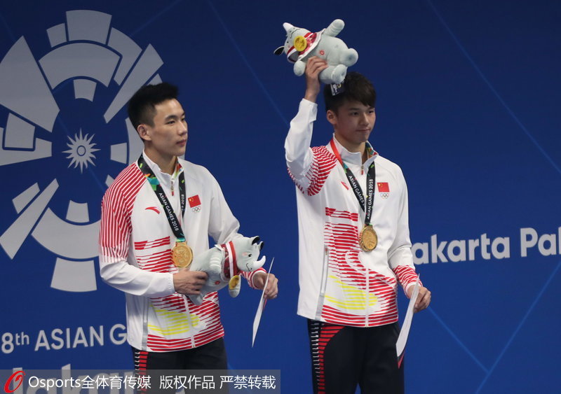 人民网北京8月29日电(管若寒 实习生邓方佳) 北京时间8月29日,2018雅加达亚运会跳水男子双人10米台决赛结束,中国组合杨昊/陈艾森以466.74分摘得金牌。
