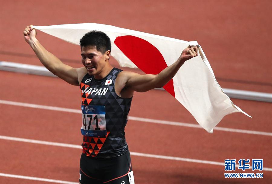 8月29日,日本选手小池佑贵在比赛后。 当日,在第18届亚运会男子200米决赛中,日本选手小池佑贵以20秒23的成绩夺冠。 新华社记者丁汀摄