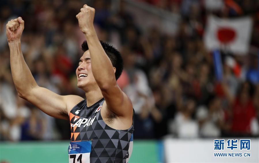 8月29日,日本选手小池佑贵在比赛后。 当日,在第18届亚运会男子200米决赛中,日本选手小池佑贵以20秒23的成绩夺冠。 新华社记者王丽莉摄