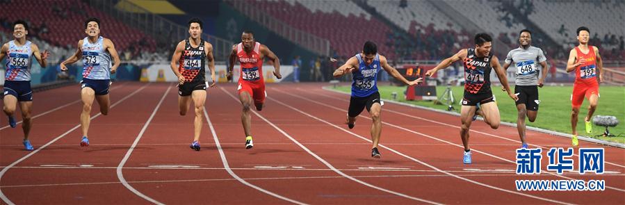8月29日,日本选手小池佑贵(右三)和中国台北选手杨俊瀚(右四)在比赛中。 当日,在第18届亚运会男子200米决赛中,日本选手小池佑贵以20秒23的成绩夺冠。 新华社记者黄宗治摄