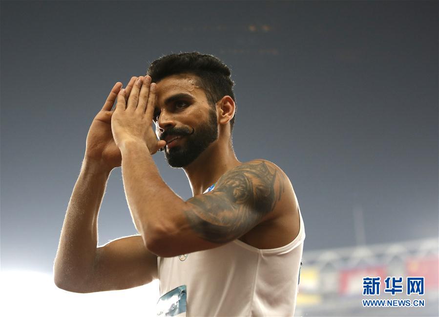 8月29日,印度选手辛格在比赛后。 当日,在第18届亚运会男子三级跳远决赛中,印度选手辛格以16米77的成绩获得冠军。 新华社记者王丽莉摄