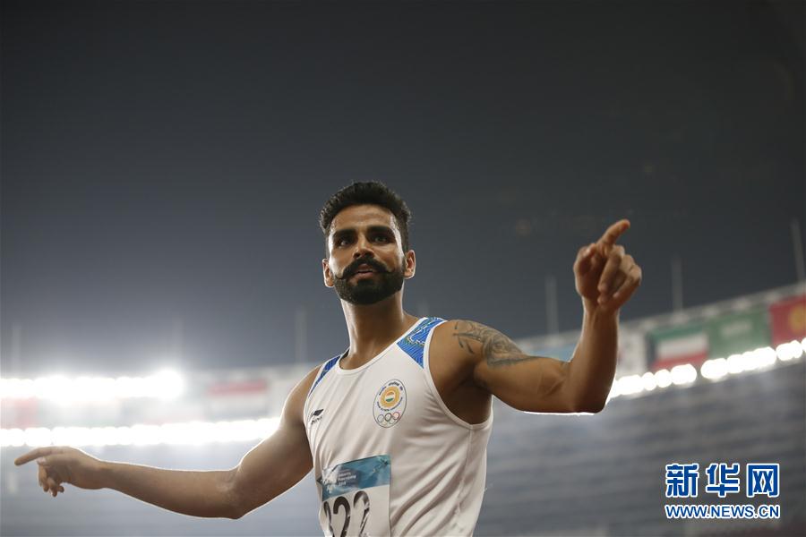 8月29日,印度选手辛格在比赛后。 当日,在第18届亚运会男子三级跳远决赛中,印度选手辛格以16米77的成绩获得冠军。 新华社记者王丽莉摄