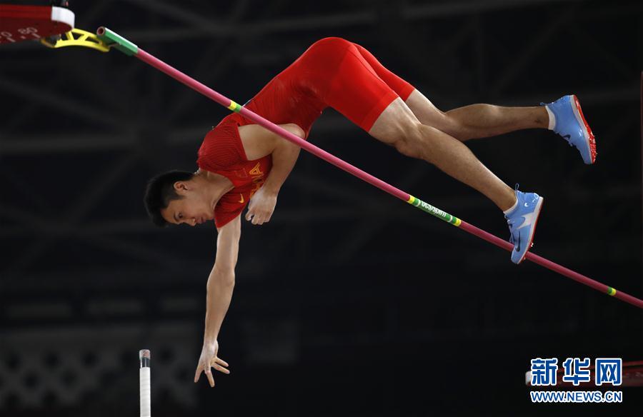 8月29日,中国选手姚捷在比赛中。 当日,在第18亚运会田径男子撑杆跳高决赛中,中国选手姚捷以5米50的成绩获得亚军。 新华社记者王丽莉摄