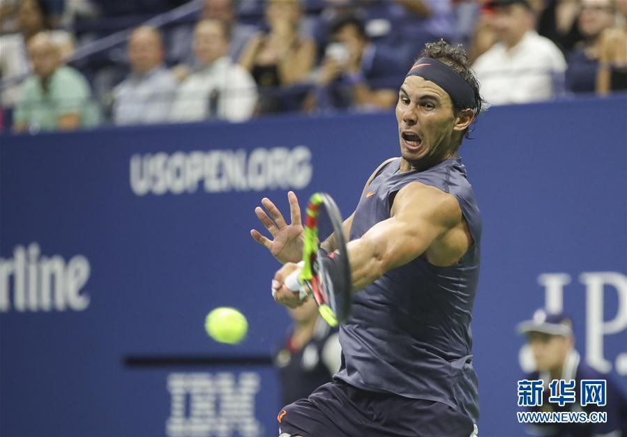 8月29日,纳达尔在比赛中回球。 当日,在2018美国网球公开赛男单第二轮比赛中,西班牙选手纳达尔以3比0战胜加拿大选手瓦谢克·波斯皮希尔,晋级第三轮。 新华社记者王迎摄