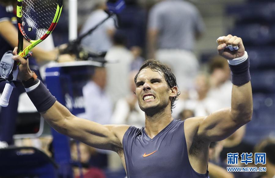 8月29日,纳达尔赛后庆祝胜利。 当日,在2018美国网球公开赛男单第二轮比赛中,西班牙选手纳达尔以3比0战胜加拿大选手瓦谢克·波斯皮希尔,晋级第三轮。 新华社记者王迎摄