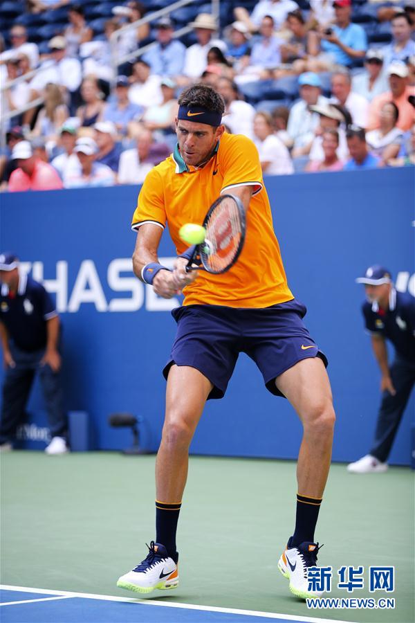 8月29日,德尔波特罗在比赛中回球。 当日,在2018美国网球公开赛男单第二轮比赛中,阿根廷选手德尔波特罗以3比0战胜美国选手库德拉,晋级32强。 新华社记者王迎摄
