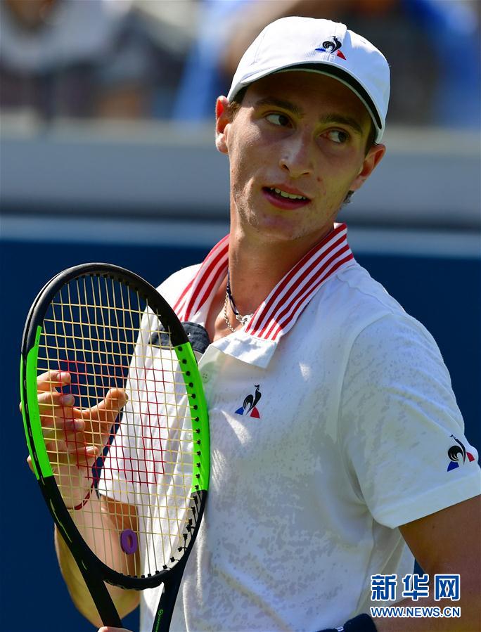 8月29日,法国选手安贝尔在比赛中。 当日,在2018美国网球公开赛男单第二轮比赛中,瑞士选手瓦林卡以3比1战胜法国选手安贝尔,晋级32强。 新华社记者刘杰摄