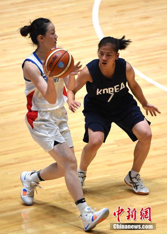 8月30日,雅加达亚运会女篮进入到半决赛,朝韩联队女篮(黑)89-66战胜中国台北女篮,与中国女篮会师决赛。中新社记者 王东明 摄