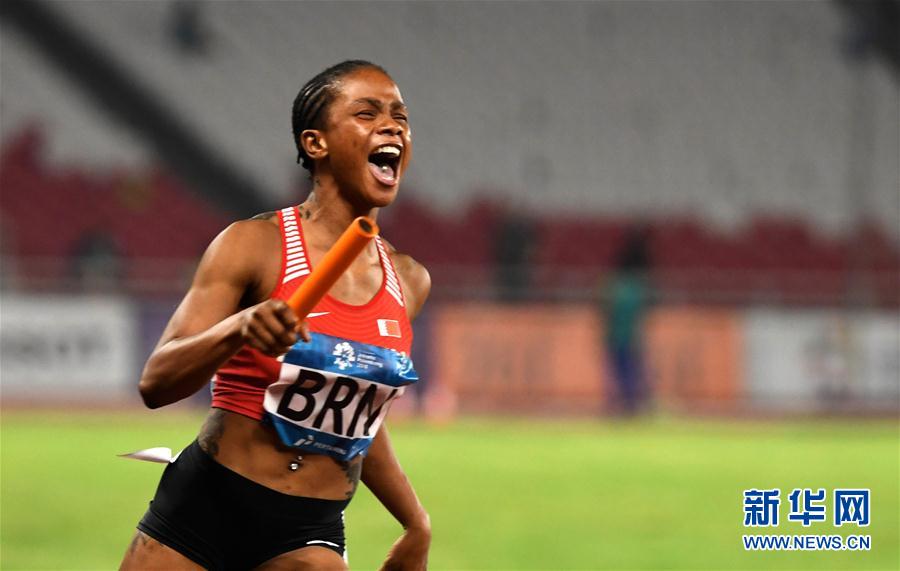 8月30日,巴林队选手在比赛中。 当日,在第18届亚运会田径女子4X100米接力决赛中,巴林队以42秒73的成绩获得冠军。 新华社记者李贺摄