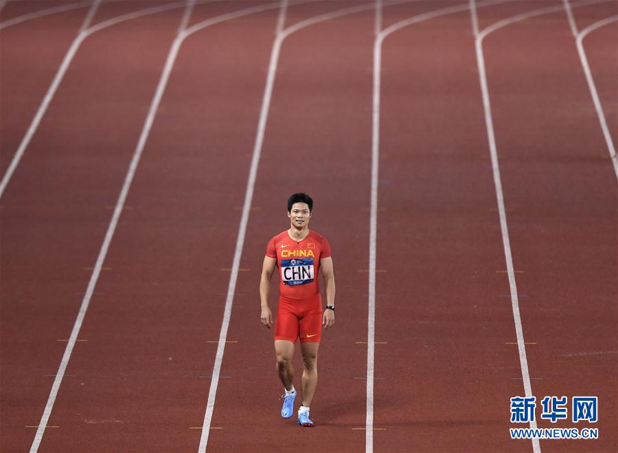 8月30日,中国队苏炳添在比赛后。 当日,在第18届亚运会田径男子4X100米接力决赛中,中国队以38秒89的成绩获得季军。 新华社记者黄宗治摄